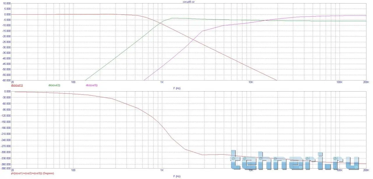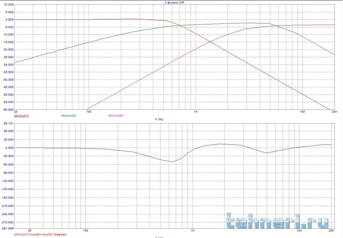 А я сделал в МС-9.Учтите что это электрические параметры,с учетом свойств динамиков электромеханические,то есть на звуке будет иная картинка по фазе.средник в противофазе должон быть или нет узнаешь лишь на макете