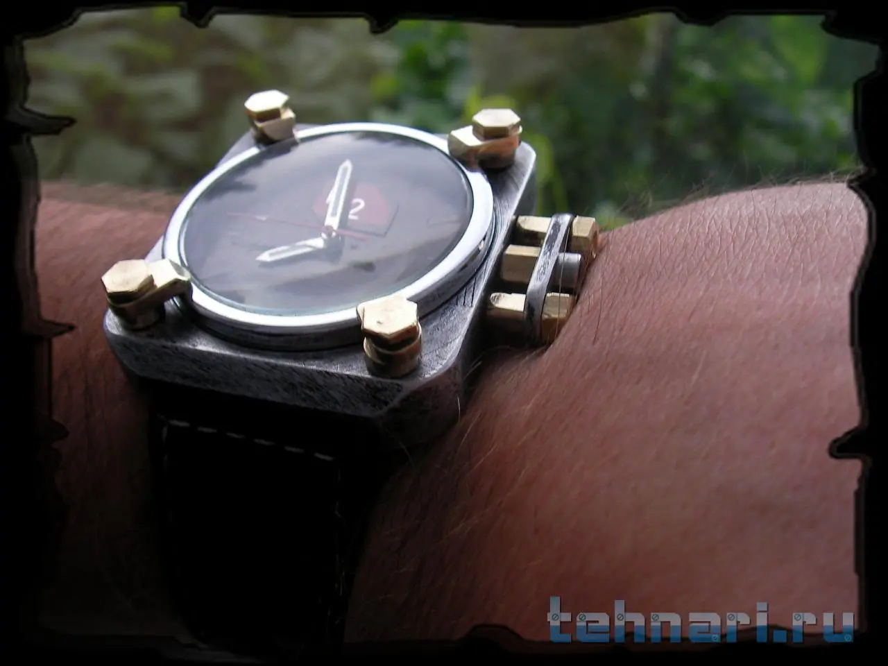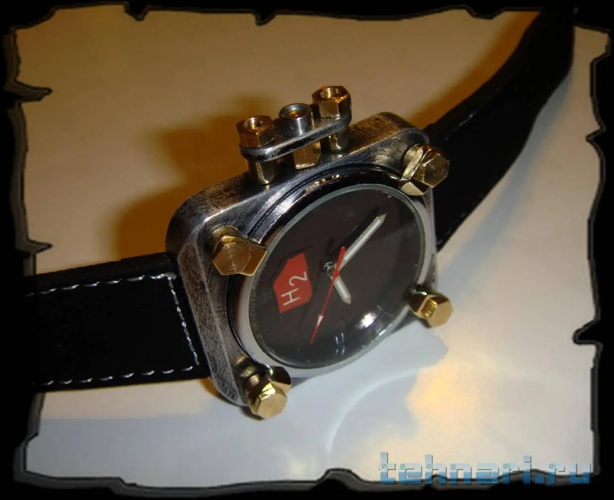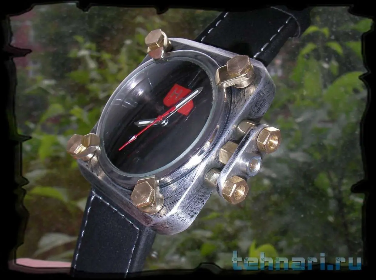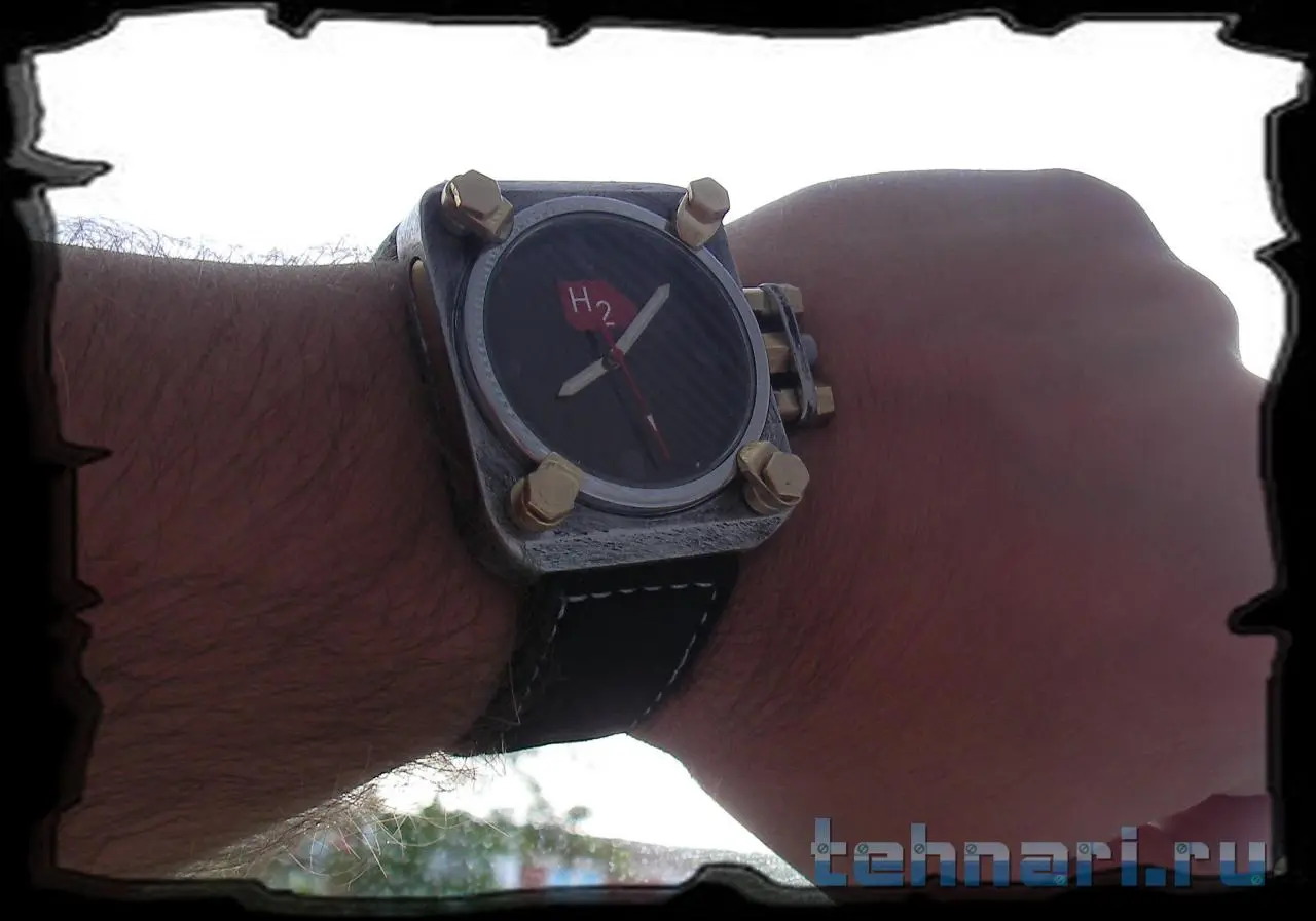 Всем привет. В продолжение темы аэронавтики решил изготовить специальные "часы аэронавта" с повышенными требованиями к читаемости времени и герметичности. Часы посвящены самому распространенному элементу во вселенной - водороду, который очень долго помогал людям осваивать воздушное пространство. Передняя поверхность часов выполнена в виде задраенного иллюминатора, который можно открыть, отвернув специальные прихваты. Заводная головка защищена от попадания влаги накидной скобой. Задняя поверхность часов выполнена из бамбука. В основе часов кварцевый механизм Miyota.