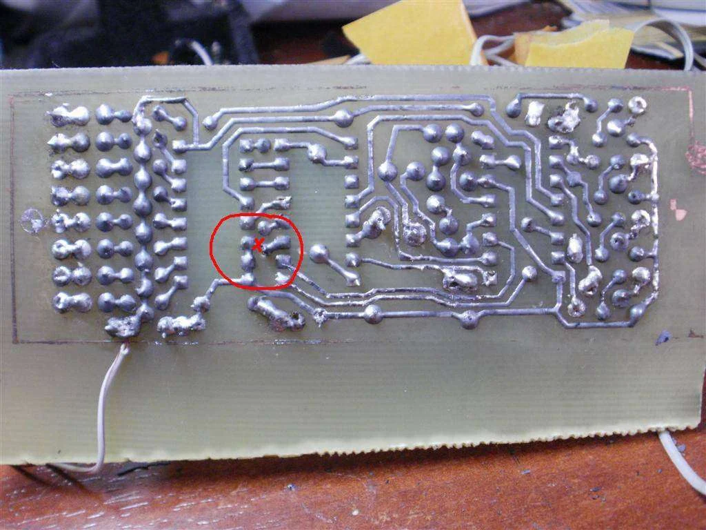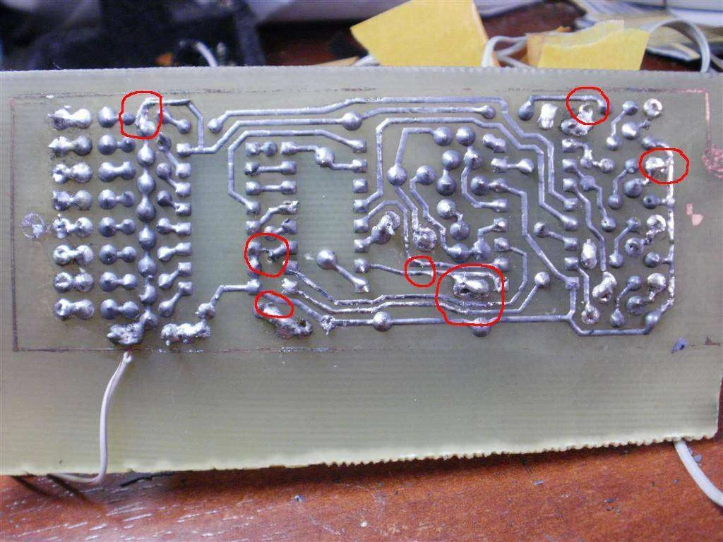 Посмотри ещё раз внимательно те места, которые я отметил на плате. Есть подозрения в замыкании дорожек.