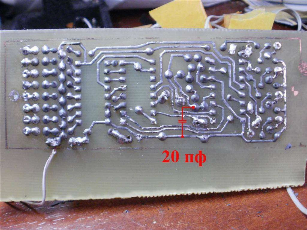 Припаял на 24 пикофарада, без изменений, а звук то свистящим должен быть или трещащим, у меня сейчас пискотреск выходит:D