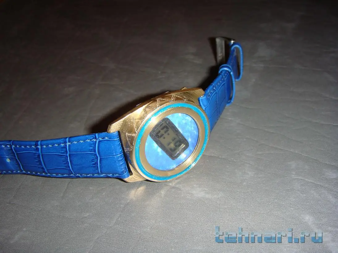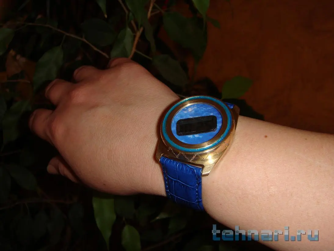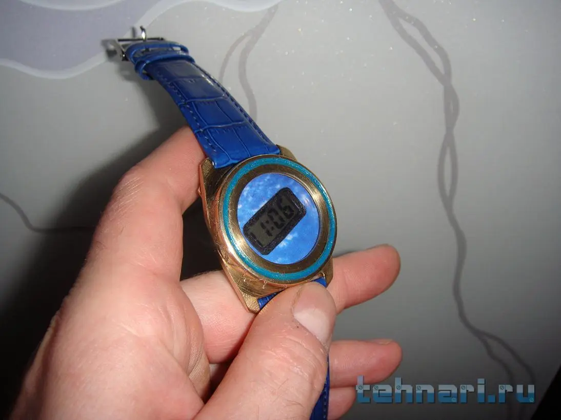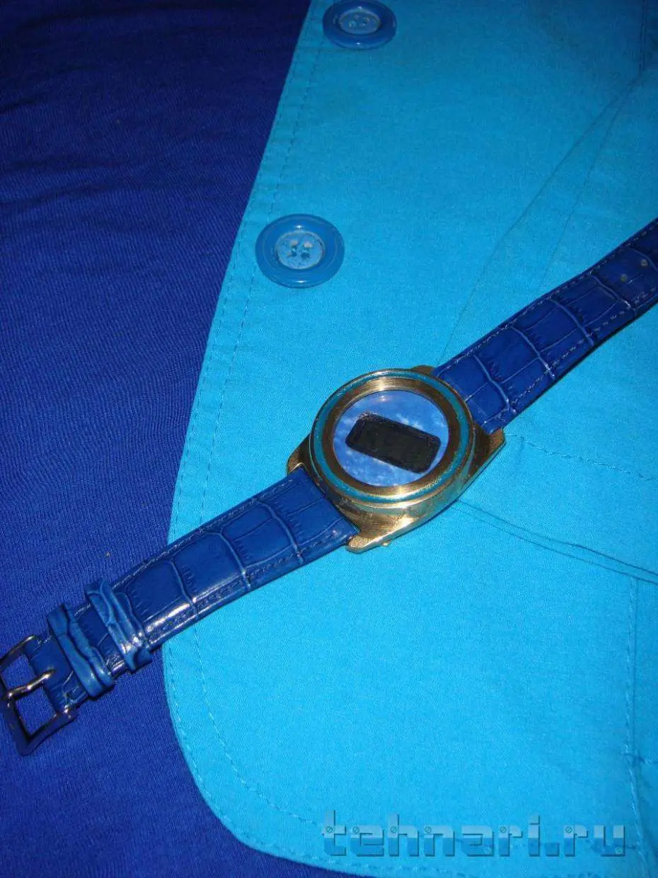 Привет всем! Вчера, увидев супругу в синем костюме, вспомнил о синем ремешке, для часов, купленном по случаю пару лет назад и решил сделать сюрприз супруге в виде часов к костюму, тем более что выдался свободный вечер. Корпус часов сделал из сантехнической гайки. Безель из сгона ввёрнут в корпус на "родную" резьбу. Стекло - поликарбонат. Электронный модуль и задняя крышка из нержавейки, от китайских часов "skmei". Поскольку костюм имеет три тона синего, то и в часах тоже решил сделать три разных синих тона. Всего на работу ушло 4 часа и 220 рублей на материал и "донора":)