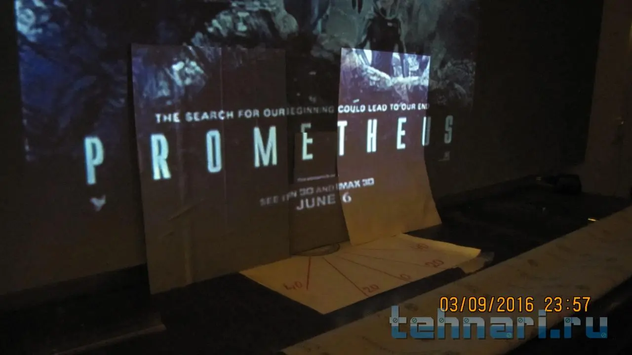 И желательно ровно на 20град ,те у Вас где-то в метре от оси проектор-экран. Можно и 1,1-1,2м..А вместо белого экрана листок белой офисной бумаги.Пробник+ткань+белая бумага+белый цвет от проектора.. Истина нужна.