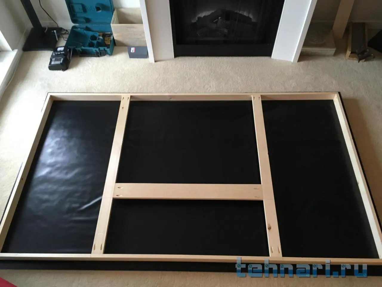 На каркас в варианте HCORE ткань можно в основном крепить по бокам (длина у нас не ограничена), а сверху/снизу закрепить менее тканезатратными способами. Но мне дерево в основе не нравится - у нас при включении отопления резко меняется влажность, и его будет вертеть.