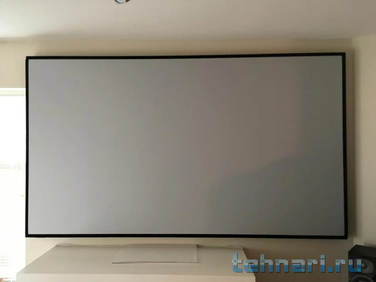 У меня 72" экран из этого сендвича - висит на обычном шнурке на одном дюбель-гвозде, не гнётся. Волн никаких не было, закатывал красками. Для экрана >100" возможно понадобятся рейки как рёбра жёсткости. Но это не точно)