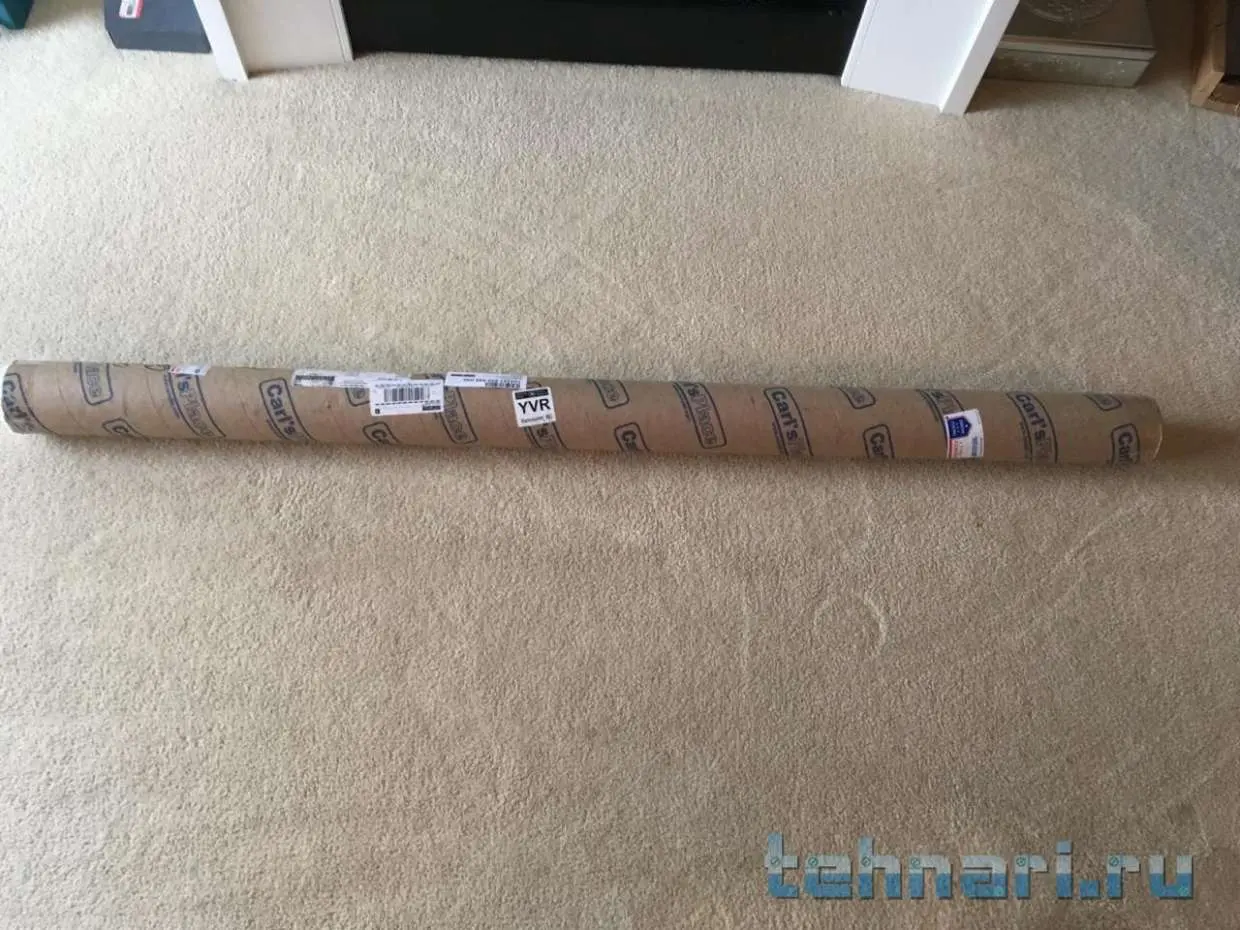 Толщина у него 1 см, длинна 3 метра. Поверхность почти глянцевая, гладкая на ощупь.