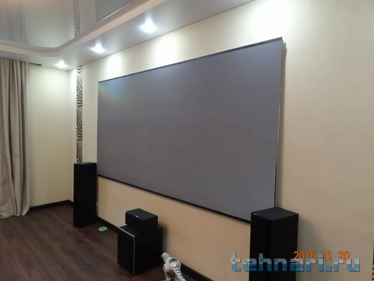 Спасибо! Да хотел повесить как в кинотеатре, где зритель ниже экрана, особенно в первых рядах. Сегодня повешу ниже, посмотрю изменятся ли ощущения от просмотра.Отлично смотрится!!! Для эстетичности рамки не хватает ты прав!!! Но на мой взгляд показалось что чуть чуть пониже экран надо повесить!!