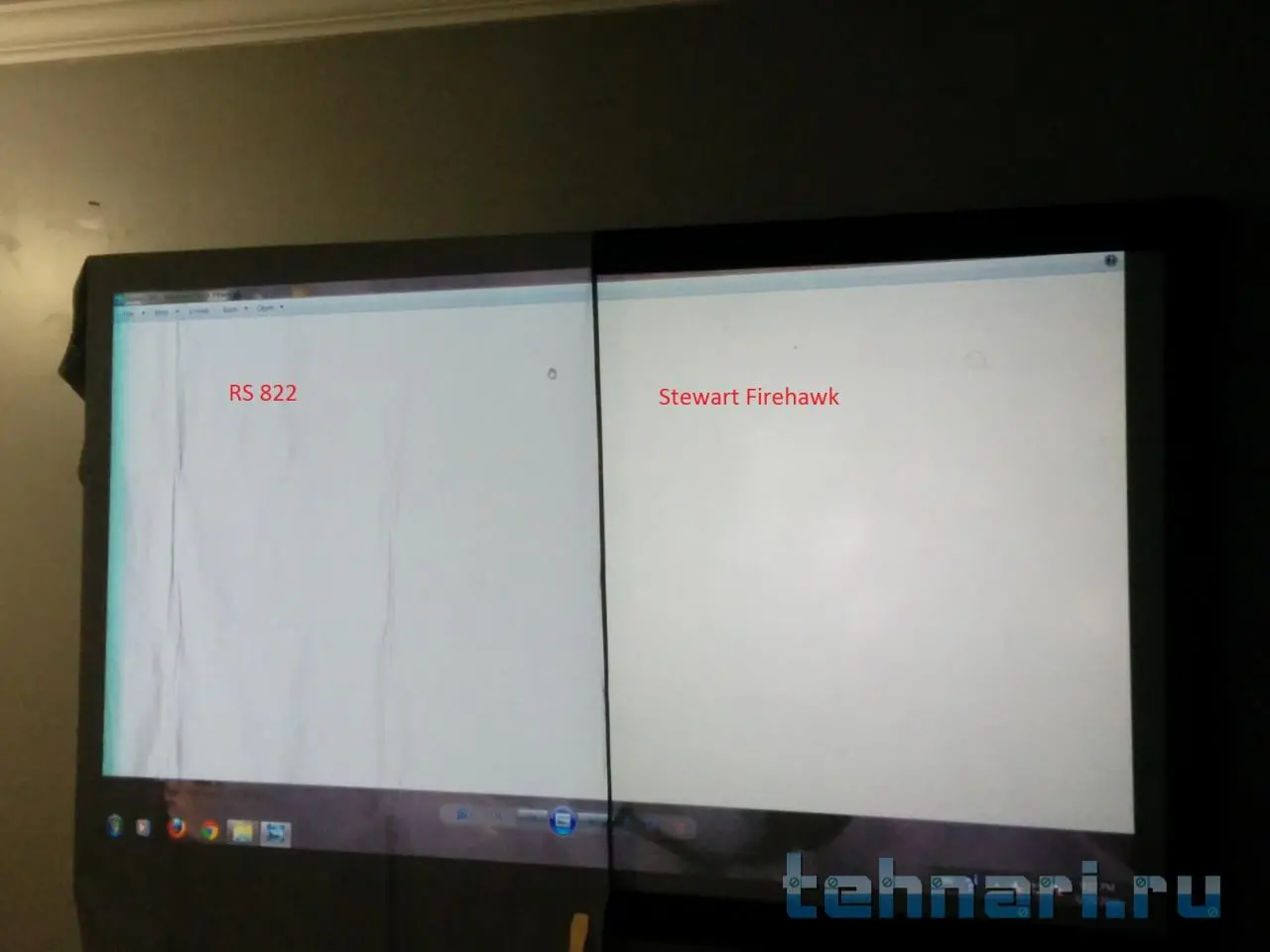 Сравнение RS 822 и экрана Stewart Firehawk...Слева лампа освещения.