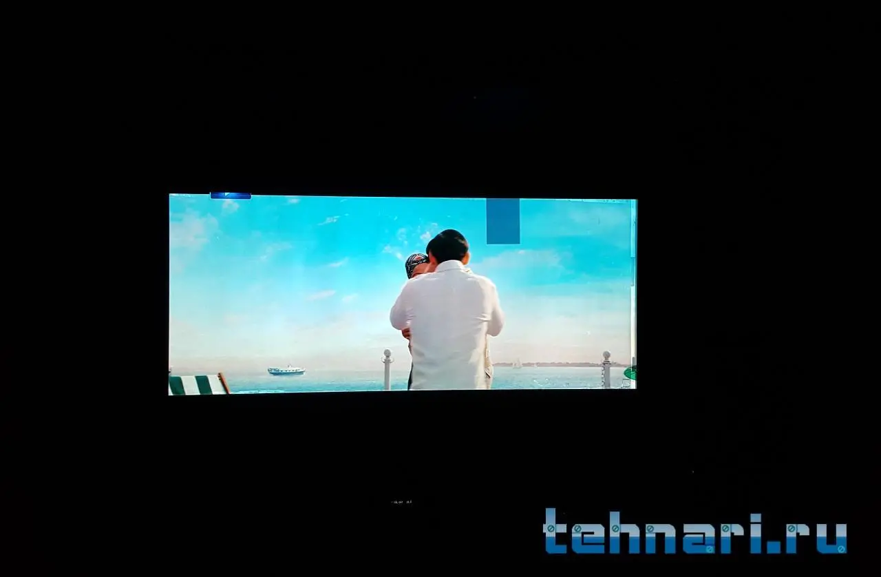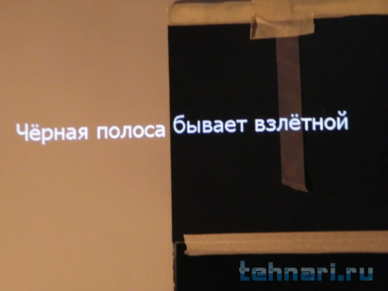 А вот ткань во всей красе , видно как хорошо она убивает контраст, смотреть на "чёрные полосы" и это при светосиле проектора наверно в 50 люмен представьте что будет при более ярком проекторе