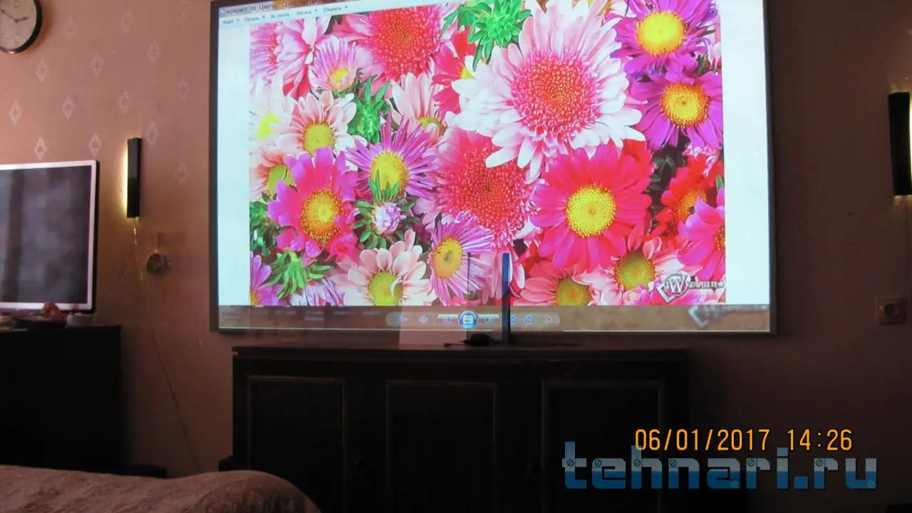 Как всегда не понравилось!))) А расстояние от экрана до проектора то какое???? метра 3???? ткань получше будет с такого расстояния!
