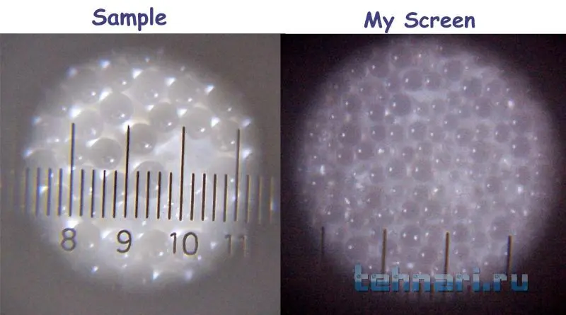 Вот снимок под микроскопом экран Da-lite HP2.8..Видна структура нескольких слоев(левый снимок фирменная ткань) а правый это самодельный экран одного из форумчан на AVS..
