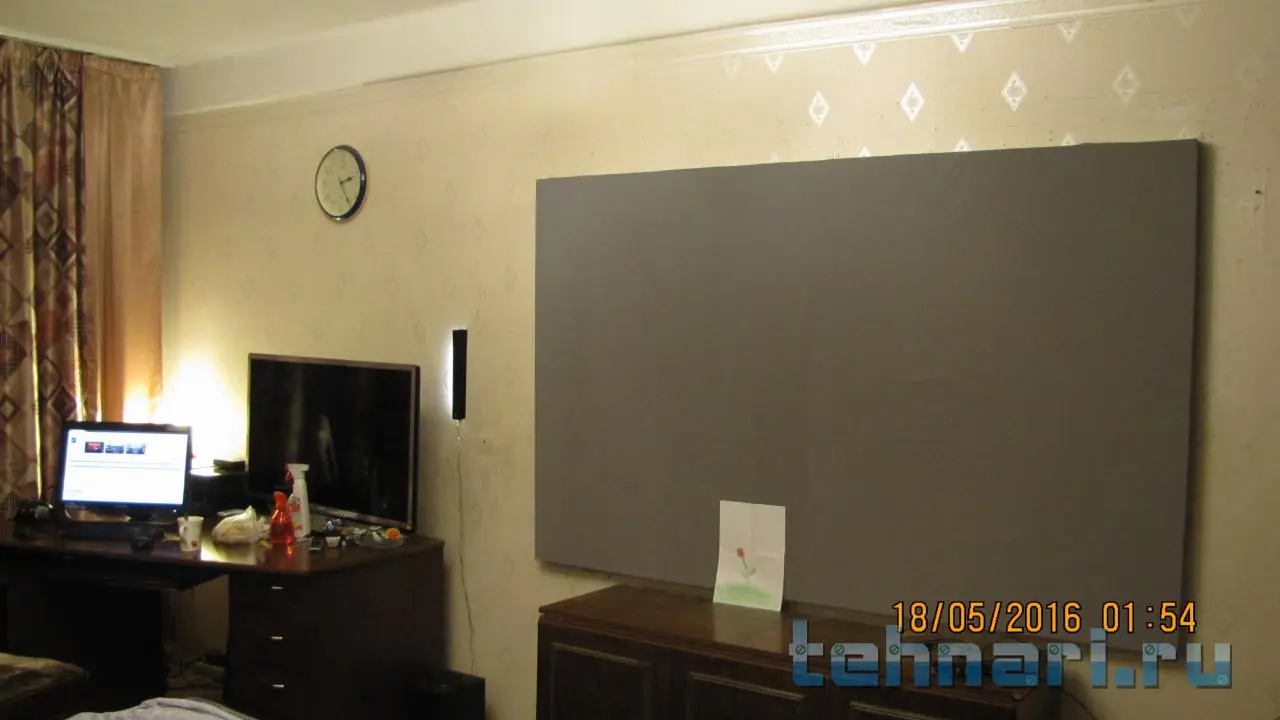 Timburbey а что за серый экран у Вас используется? И по ощущению ткань засвечивается с линии проектора..Ну как то не так она работает ..Потому как у меня экран из ткани выглядит почти черным а у Вас он светлее как то выглядит..
