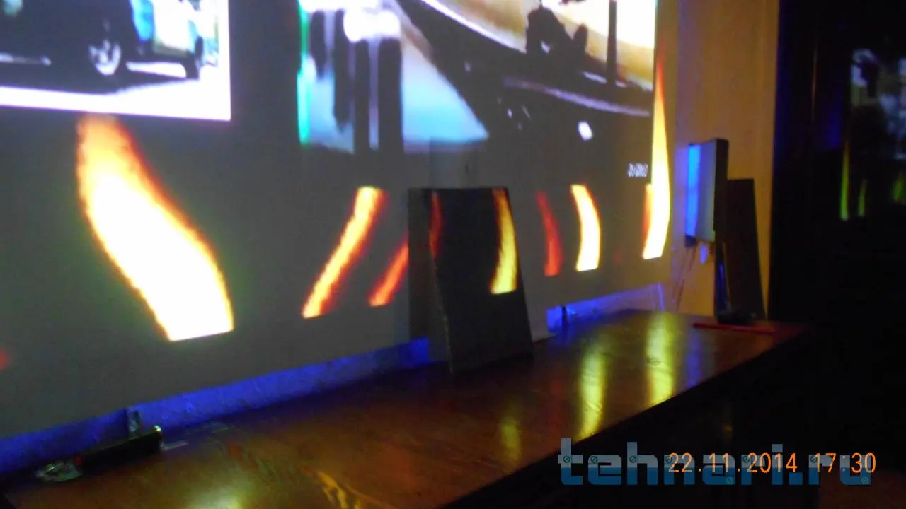 Судя по фото, вышло очень даже здорово. Что обсуждать...если цвета полезли, страшного нет ни чего. Я вчера полазил в настройках проектора отдельно, вроде вытянул основные. Желтый осталось чуть подкорректировать.
