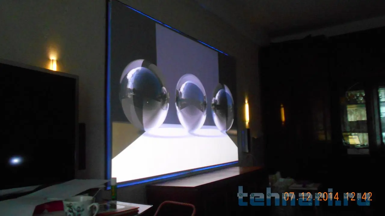 С проектором вот скорее всего будут проблемы, так как чувствительны такие экраны к углу проекции. Опять же, еще будет играть роль расстояния, с которого Вы смотрите. Если Вы любитель "первых рядов", то есть сомнения сильные, что такой экран для Вас.