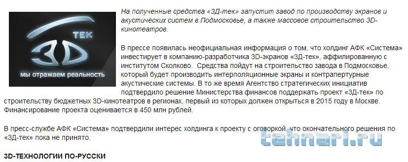 Гос поддержка позволит выпускать черный экран 3d-Tek...