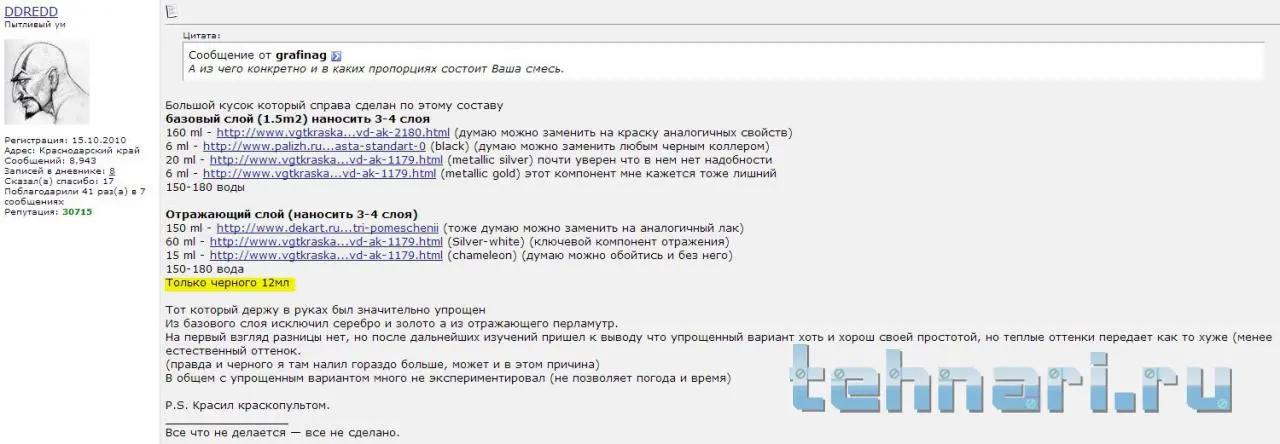 dinoo -загорелся это по нашему!!! В рецепте DDREDDа есть неточность,которую надо сразу оговорить (в верхнем отражающем слое нет черного колера..)