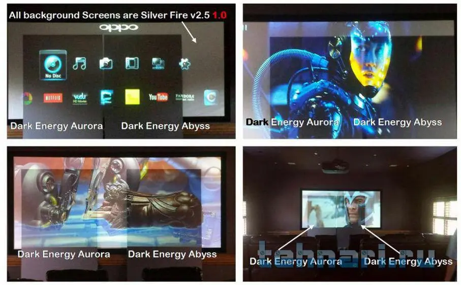 Материал используется не автомобилей Wrap, ни затененных Винил, но фактическая Оптический диффузор материал специально подходит для применения предназначены. Материал наносится на различные подложки с помощью истинного процесса ламинирования, что гарантирует точный контроль качества Теперь голову любой спор, этот пост более природа выявить, но она должна быть четко отмечено, что будет сделано доступные версии выше, что будет конкретно предназначена для DIY'er, и очень скоро будет призыв к бета-тестеров ... не так много, чтобы подтвердить жизнеспособность концепции, но, скорее, подтверждают фактическую производительность и качество сборки. Готовая Исправлены экранизации на твердых подложках, конечно, найти свое место среди всех остальных подобных Mfg "Черных экранов" и останавливаться на "Форуме" от Screen. Но гибкой ткани версии, которые могут быть растянуты на сделай сам кадр, или частично гибкий вариант, который может быть нанесен непосредственно на гладкую стену или практически на любой поверхности такой ... те, которые предназначены для заполнения потребности DIY'ers, что действительно очень нужно высокий уровень производительности освещенности и для кого спрей живописи современных покрытий не вариант. В приведенном ниже макета, есть две разные версии (48 "х 85"), установленные в отношении 143 "по диагонали 2.39: 1 серебряный огонь v2. 5 1.0 экран. Проектор Panasonic 8000U А.Е. установлен в 16,5 "с NO льготного калибровки сделано ... прямо Нормальная лампа / Стандартная установка изображения. Не желая возиться с простой лампы накаливания, изображения, показанные взяты с безудержной Солнечный свет падает прямо напротив экрана стены ... поступающей из не менее чем 6 Дважды Хунг вдов, 3 на каждой стороне комнаты. Комната окрашена быть неотражающая ... единственная реальная "преимущество" в весь сценарий. Я уже повесил некоторые ручки на двух версиях .... соответствующие кого я чувствую. Темная энергия " Аврора & Бездна " * * Все права защищены жду образцов обоих ДНП Супер Нова и Black Diamond 0,8 / 1,4 экранах поступить так, чтобы сделать некоторые детальные сравнения. Увидев, как я ожидал увидеть решил улучшение по всем направлениям ... сумасшедшие меньше различия в затратах несмотря на это. Опять же, обратите внимание, что часть выше, не предназначены для DIY приложений, в то время как часть действительно подпадают под что диктовать. Нет скрытой повестки дня здесь ... это не то, что он есть. Для всех тех, здесь стремится создать полностью Sharable приложение, get'ter Дан! Некоторые большие успехи были сделаны. Предоставление возможности что DIY'ism основан на. В эти дни, с линии став менее тянуло и необходимость охватить выберите продукты, которые помогают понять, DIY'ers реальную стоимость и производительность, имея все варианты, представленные может быть только на пользу всем. Я горжусь тем, что было разрешено поставить это для всех, чтобы видеть, и это будет впервые показан на DIY форуме экрана. Пожалуйста, держите обсуждение ограничивается мнениями, как относится к смотреть производительности, а относится к тому, что другие примеры применения черный экран называются для .. Это в настоящее время не продукт для продажи, так что не спрашивайте о ценах и наличии. Когда все, что придет около, он будет делать это в надлежащем порядке (в том числе ... некоторых бета отзывы ...) в правильном месте и быть п