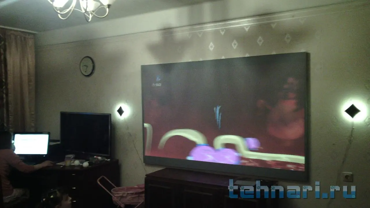 Уважаемый HCORE чёрный цвет меня в вполне устраивает, мне бы яркости как нибудь добавить.А на счёт того что бы отодвинуть чёрную ткань от белой ,это я попробую. Скоро придёт посылка с led rgb лентой ,буду переделывать экран и попробую.даже есть идея с регулируемым расстоянием, можно сделать от 0до10мм.незнаю надо ли это как думаете?