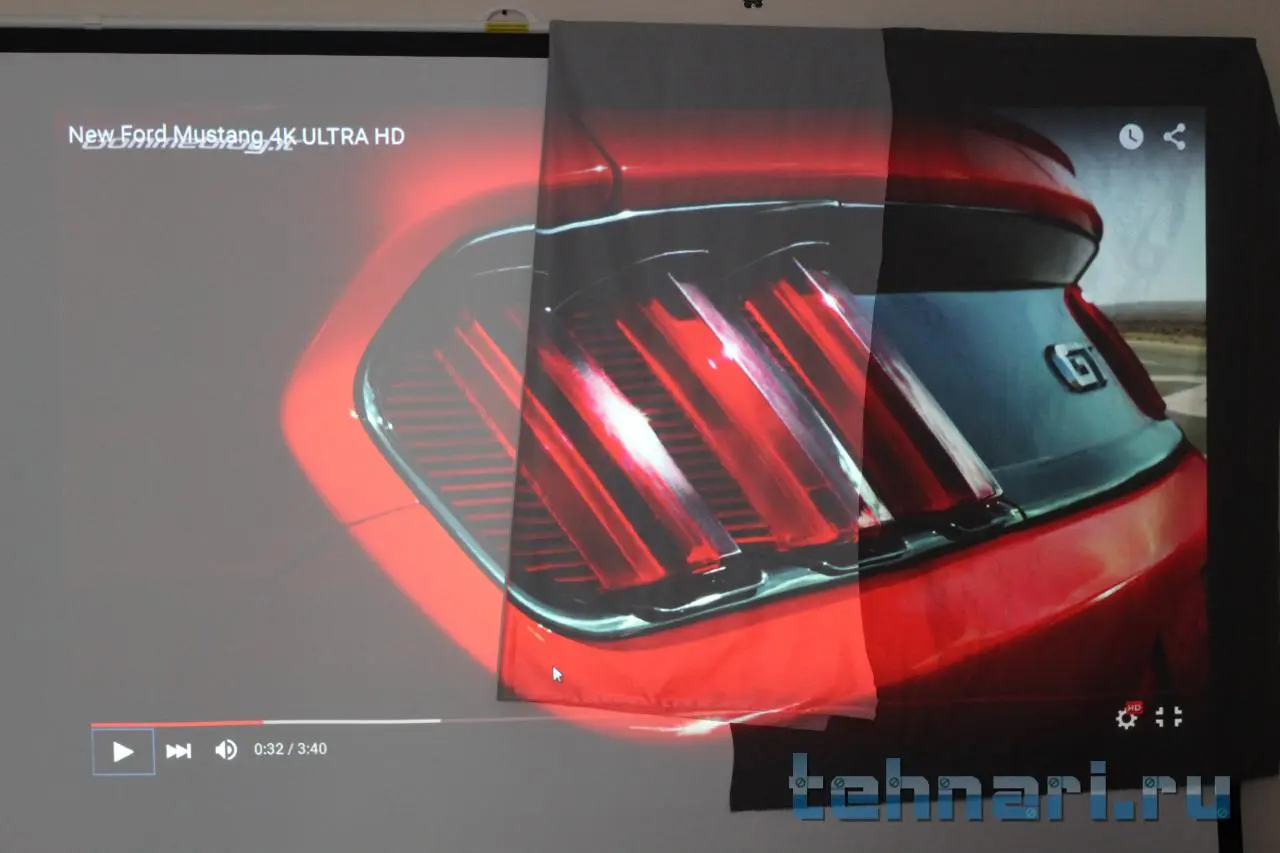 Проекторы калибруют по белому экрану (яркость 50% и контрастность 50%)