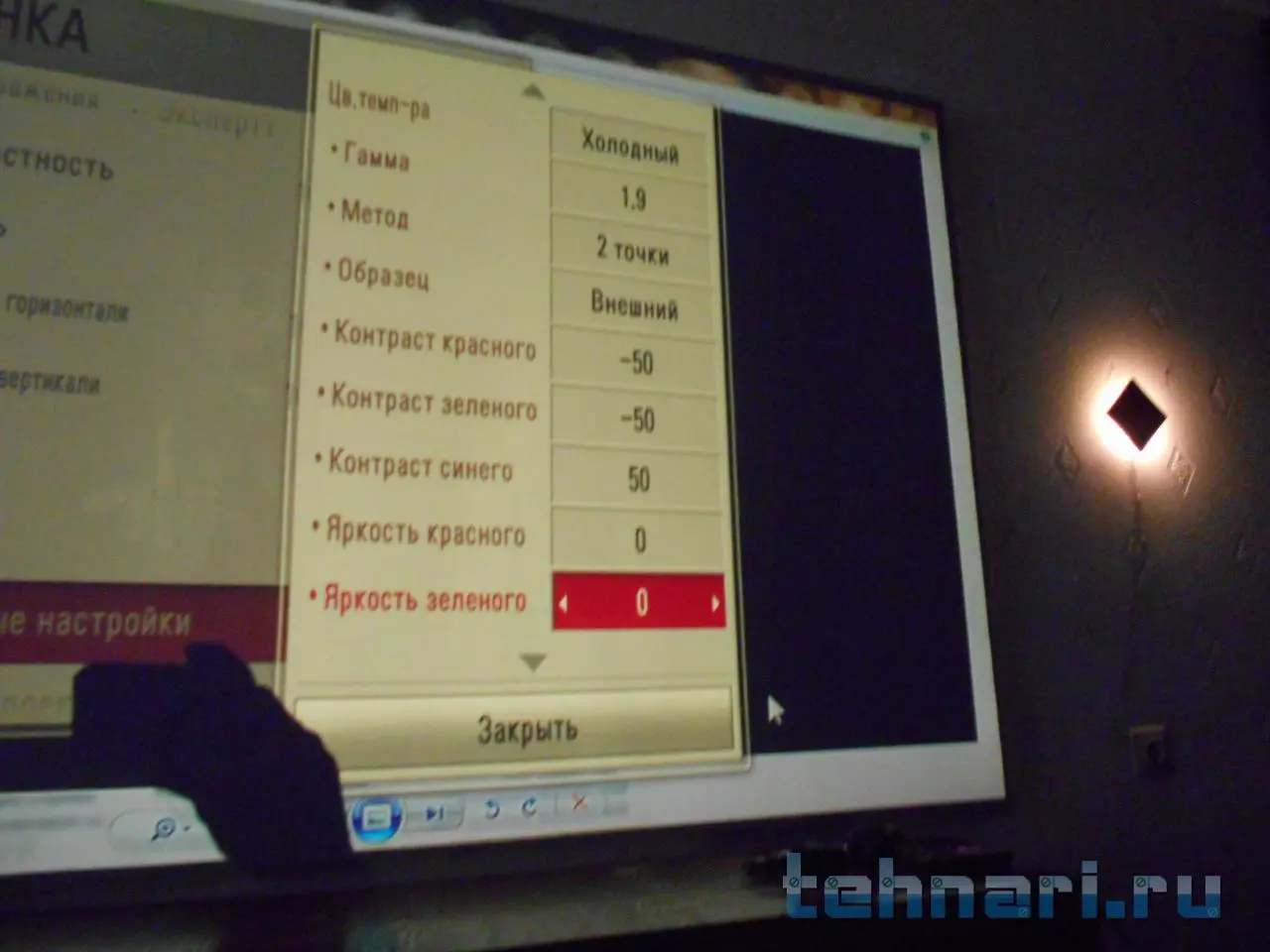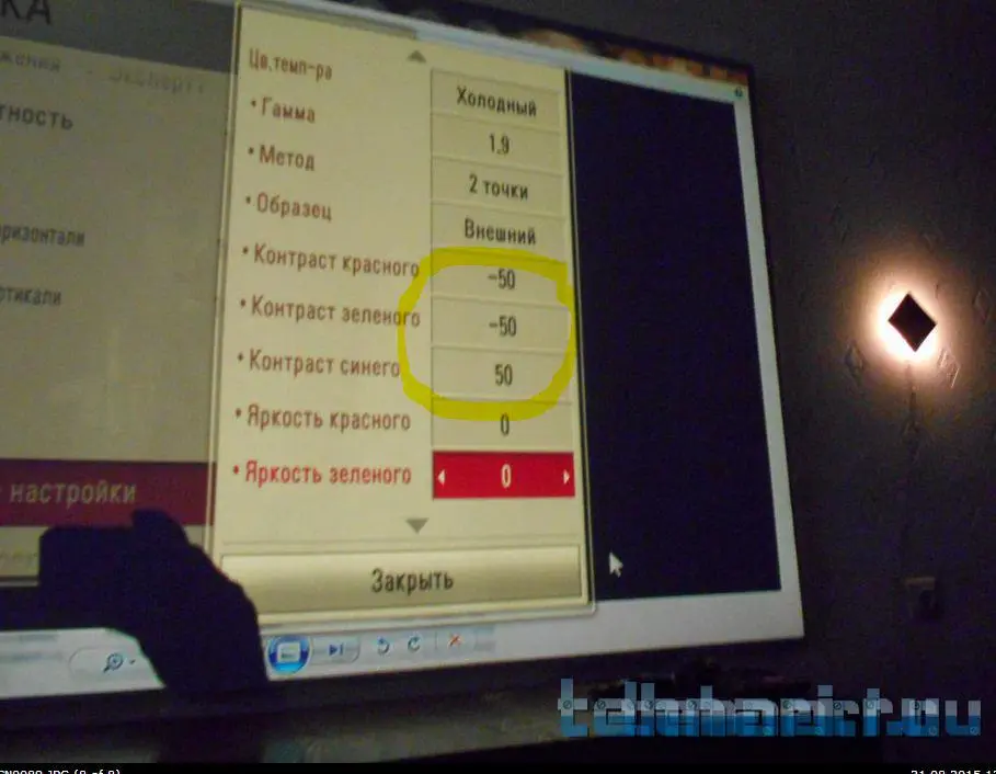 Вот фотки показывающие нарушение белого..(настройки яркости в меню уменьшены на 60%,картинка вялая и белый -скорее красно зеленый...