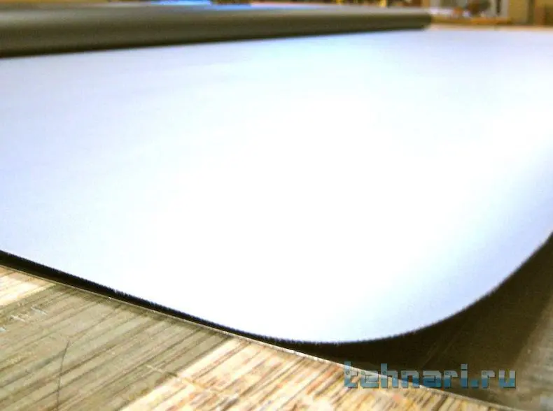 Вообще подобную поверхность можно получить как след от наждачной бумаги..Важно что бы именно вертикально располагались микро царапины,поверхность получается очень похожая на этот материал(если на такую поверхность нанести отражающую краску угол обзора шире будет по горизонтали чем по вертикали...) Это сильно влияет на равномерность свечения по полотну..Ограничение же по вертикали уменьшает свечение на потолок и пол..О этом мы уже говорили...В многих патентах присутствует именно такое покрытие(вертикальные цилиндры) А чёрный слой можно попробовать сделать в виде вертикально процарапаных канальцев(глубина их подбирается так чтобы слой оставался менее засвечен сбоков...Вертикальные полоски меньше заметны на картинке,это опять эффект тени на чёрном...) Раз это уже применяется в экранах почему и нам не взять на вооружение...Экран это сложное оптическое устройство, а мы пока получили два оптических слоя(тёмный нижний и отражающий прозрачный верхний слой..) Это очень упрощённая схема экрана, и многим этого хватит, но почему не задуматься над более совершенным прототипом проекционого экрана?
