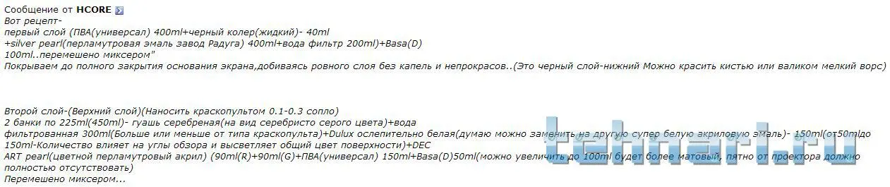 Отлично! Спасибо за совет DDREDD!!! Всё же хочу сначала всё сделать по вашему рецепту!!! Подскажите у вас в рецепте указано ([FONT=&quot]160 ml - Краска акриловая для стен ВД-АК-2180 «Белоснежная» (влагостойкая)? Это тоже VGT??? И про лак? Всё таки матовый или полуматовый????? [FONT=&quot]Полученная[/FONT] смесь я имею ввиду например нижний слой, по вязкости подходит для краскопульта или надо [FONT=&quot]разбавлять[/FONT]???