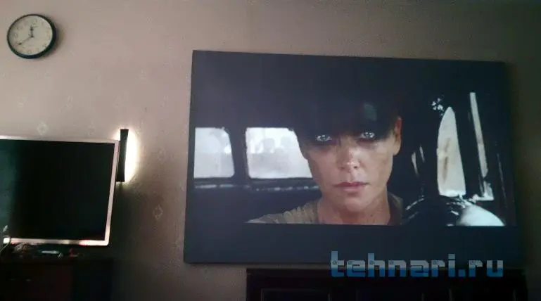 Ну что ж первый отражающий слой напылил,вот отчёт)Проекция при выключенном и включённом свете.Люстра светит прямо на экран.IMG_0622.webp