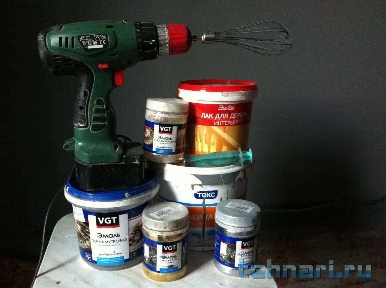 миксером,затем добавил 100ml гуашь серебристая(завод Луч) и снова перемешал миксером,затем добавил