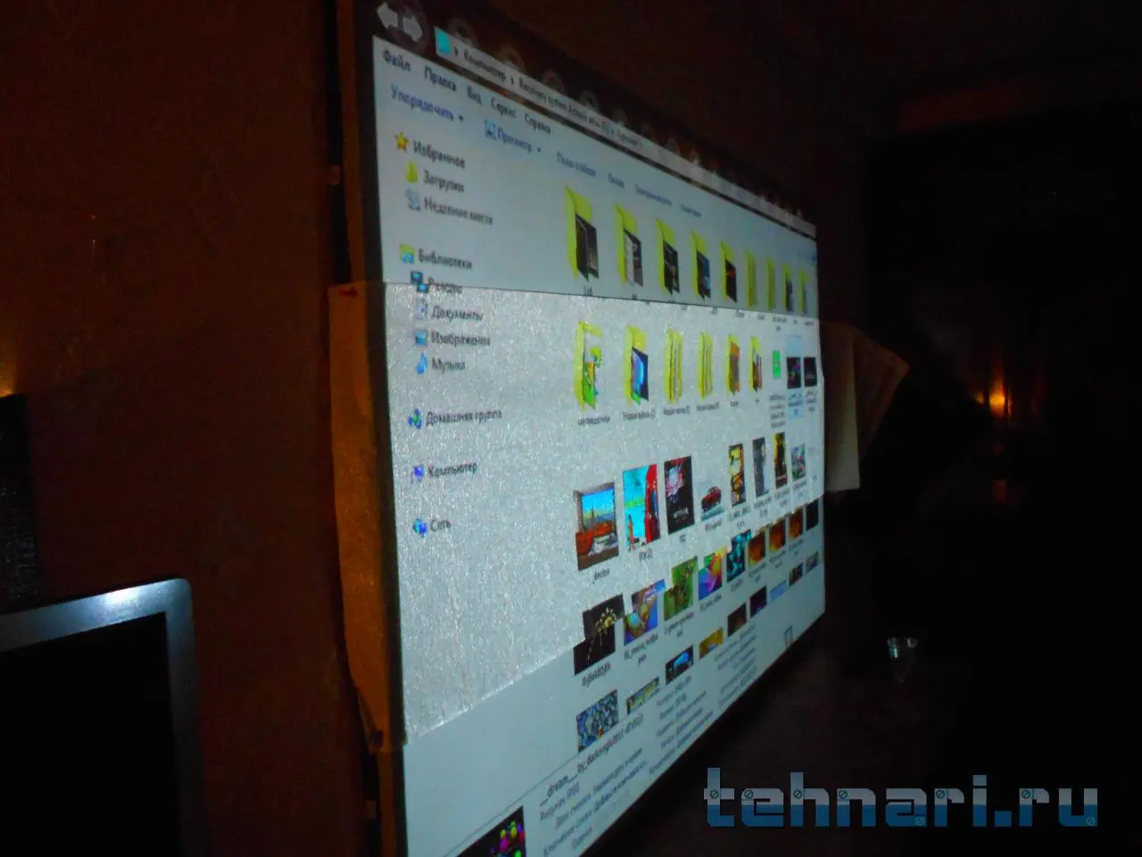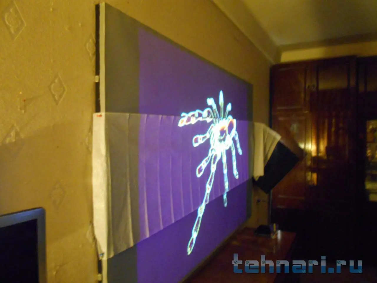 Фото сделаю вечером, но это настолько не принципиально, даже не понимаю почему за этот цвет все так зацепились. Любой оттенок (красноватый, синеватый) можно подкорректировать профилем проектора.