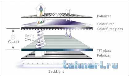 Груда пленок в мониторе распределяет свет от ламп/светодиодов которые светят в торец матрицы, там и условия и задачи другие.