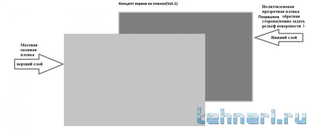 voldemar72664 вся конструкция базируется на обычном дешевом полиэтилене(пленка для парника) Что бы это все выглядело более красиво конечно поверх полиэтилена надо нанести матовую(полу матовую)пленку -роль матовой пленки больше эстетика..... все и без нее работает...(покрою глянцевую сторону пробника спреем Rustoleum matte finish..Это уберет глянец,но прозрачность будет примерно такая же...)По этому фирменная матовая пленка должна иметь хорошую прозрачность...