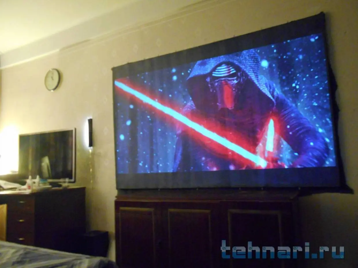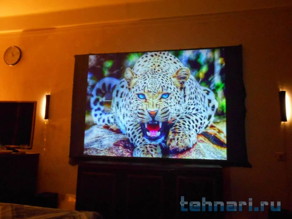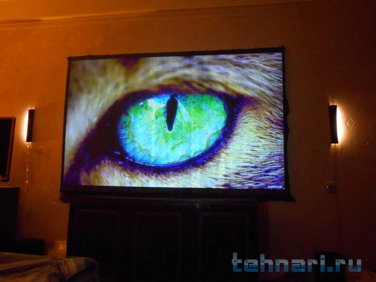Я смотрю на этой шторе уже год,тоже проектор 3LCD с яркостью 2800L,даже в эко режиме норм.Интересно,что на белом яркости заметно не хватает в эко,но на светло-сером вполне норм=) Думаю ещё одним плюсом этого экрана вам покажется механизм сворачивания,слегка оттянул вниз и она сама сворачивается(инопланетные технологии) =)
