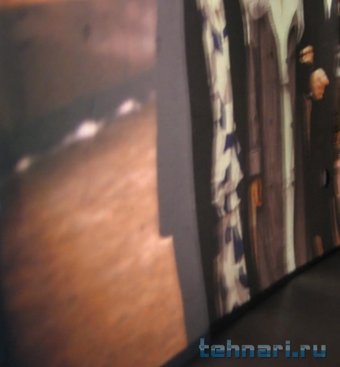 И если смотреть совсем рядом с обьективом то яркость очень высокая(но так смотреть не кто не будет-глазами рядом с линзой...Угол действительно шире чем я вообще представлял(только постепенно яркость меньше от проектора)..Смотреть рядом с экраном не возможно картинка рак размывается(только на удалении где проектор стоит..) Но эффект поражает своей эффективностью борьбы с окружающим светом.