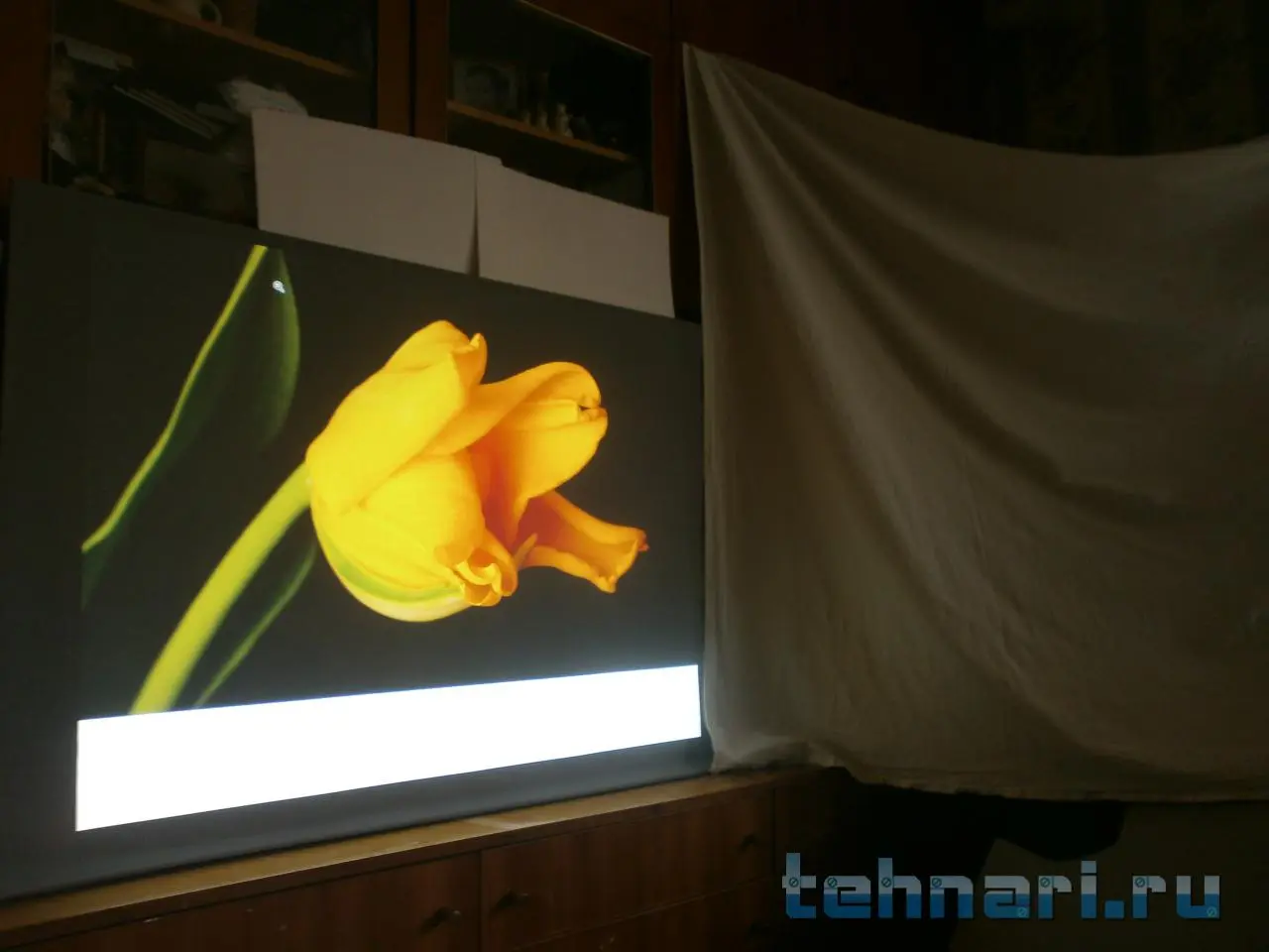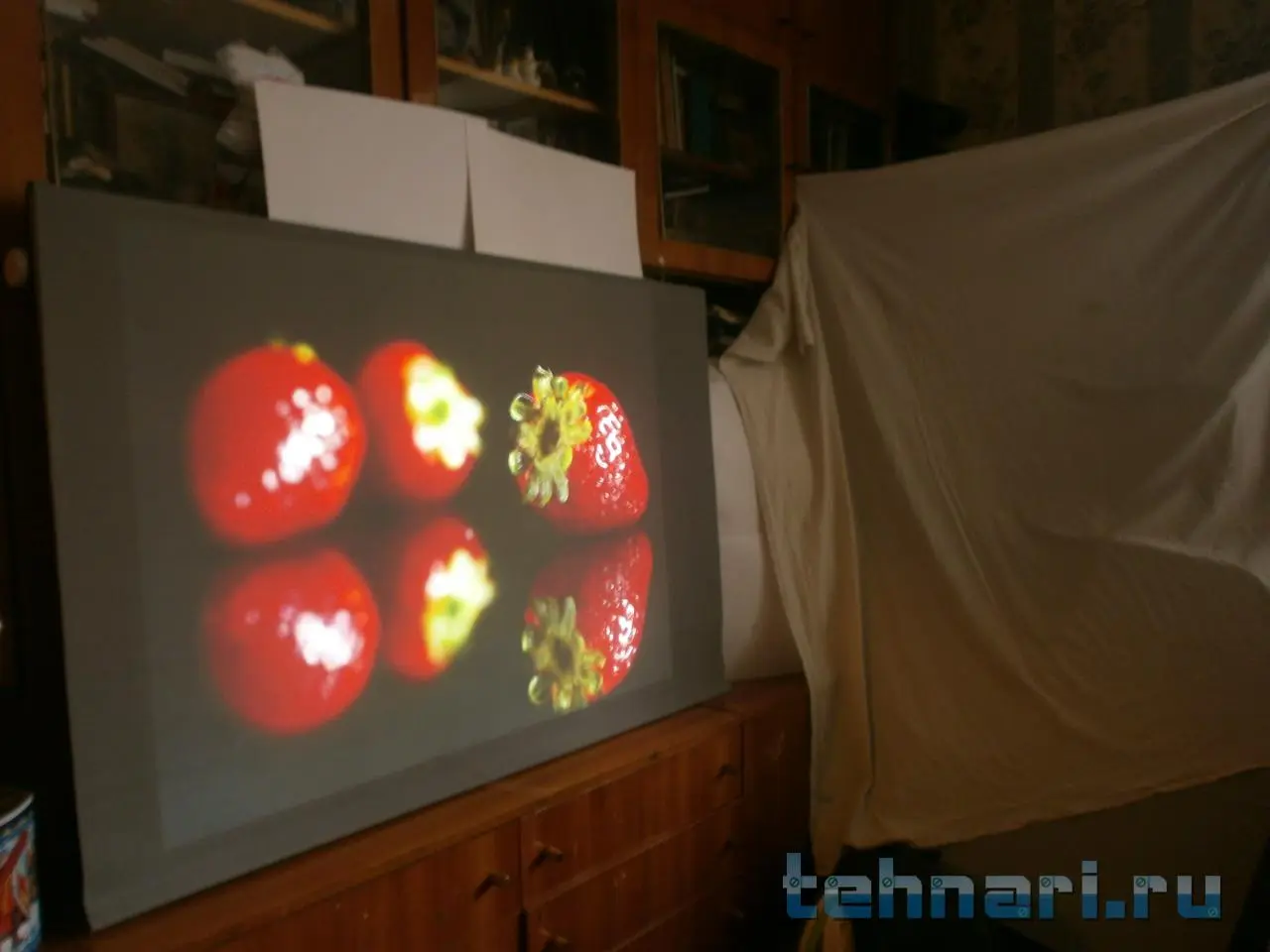 Облом! Тогда берите штору из икеи, проектор 3000лм. Никокого горячего пятна, 100% углов обзора, черный - темно серый!!! Но мне этого мало..
