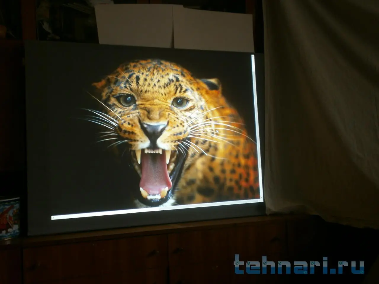 На фото конечно же есть неравномерности ввиду волнообразности и заломов пленки. Присобачить ровно не удается. Но горячего пятна нет. И если пленку наклеить на оргстекло или алюминиевую 3 мм композитную панель с идеально ровной поверхностью, то этих неравномерностей не будет и соответственно вся картинка будет в одной ровной плоскости...