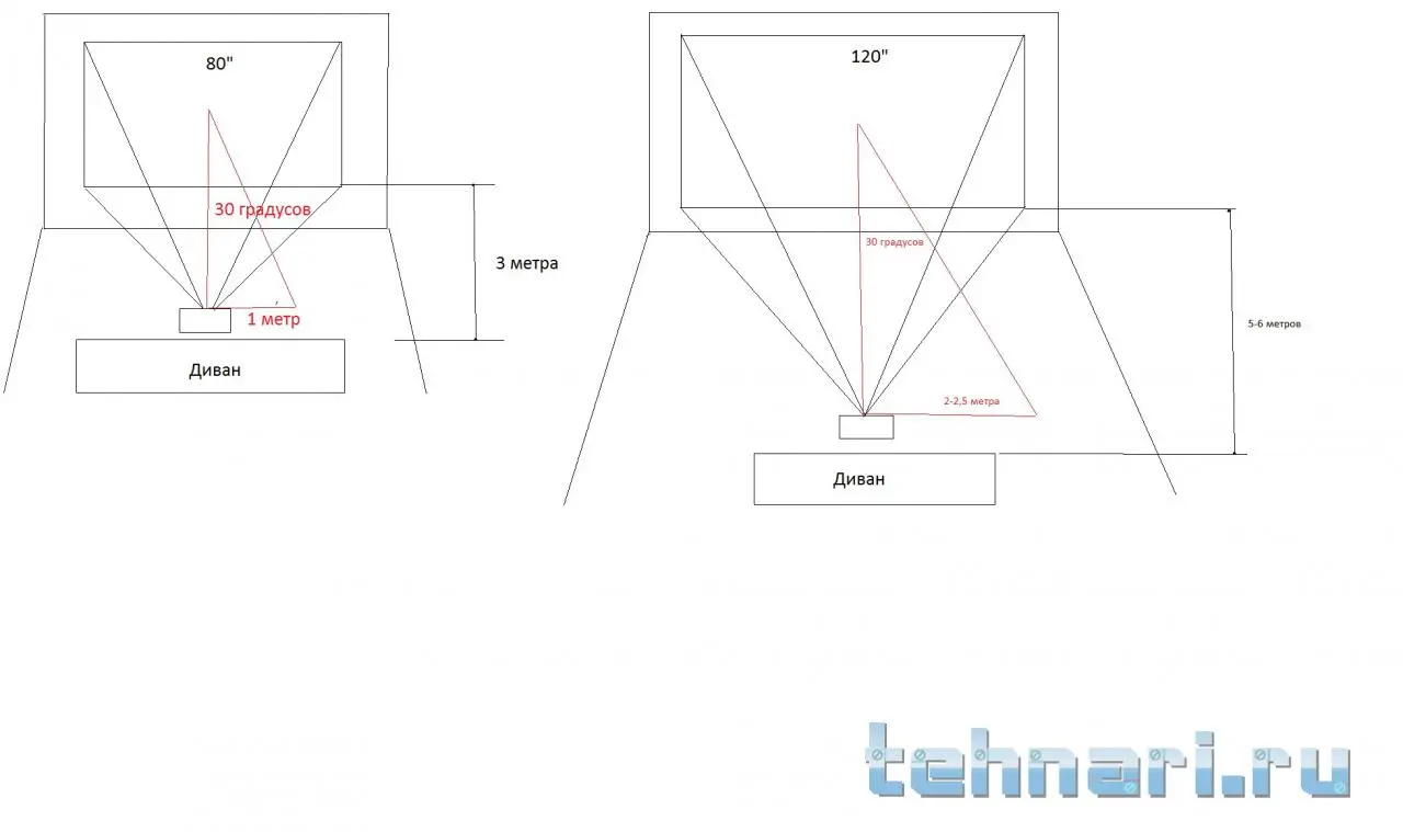 Измените в этой схеме проектор на более короткофокусный и углы источник-наблюдатель уже будет существенно иные.