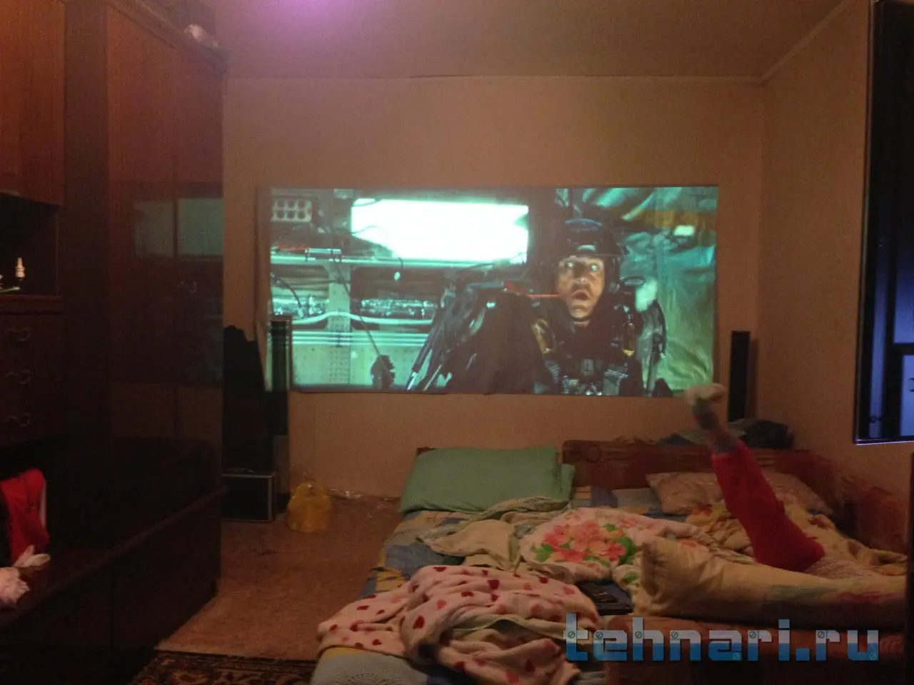 Например, у DECIDE проекция с 5-ти метров, как я понял и углы источник-наблюдатель, остаются в достаточно приемлемой зоне, что-бы яркость не сильно падала, даже когда проектор установлен низко, а снимают, чуть-ли не с потолка.