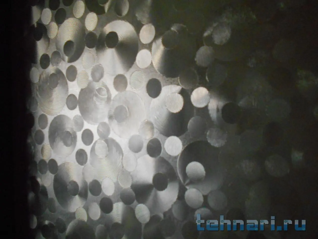 Шероховатая поверхность линзы в виде насечек дополнительно отсекает боковой свет...