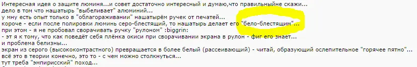 Нет пленки не наш путь...на одном форуме парень вбухал кучу денег и сделал вывод что результат неуд...горячее пятно хоть и слабое обеспечено ,углы обзора ок 60*...и доступ он имел к самым разным пленкам и по цене и качеству...а мы найдем хороший вариант..небоись!!! завтра VGT прикуплю заканчивается...Дело в том что на малом образце многих косяков не выявить...А большой пробник в пол экрана дает полную картину...Меня забило на качество белого цвета ...если улучшу то все ок...Большая часть проблем позади и самую малость подумать ....