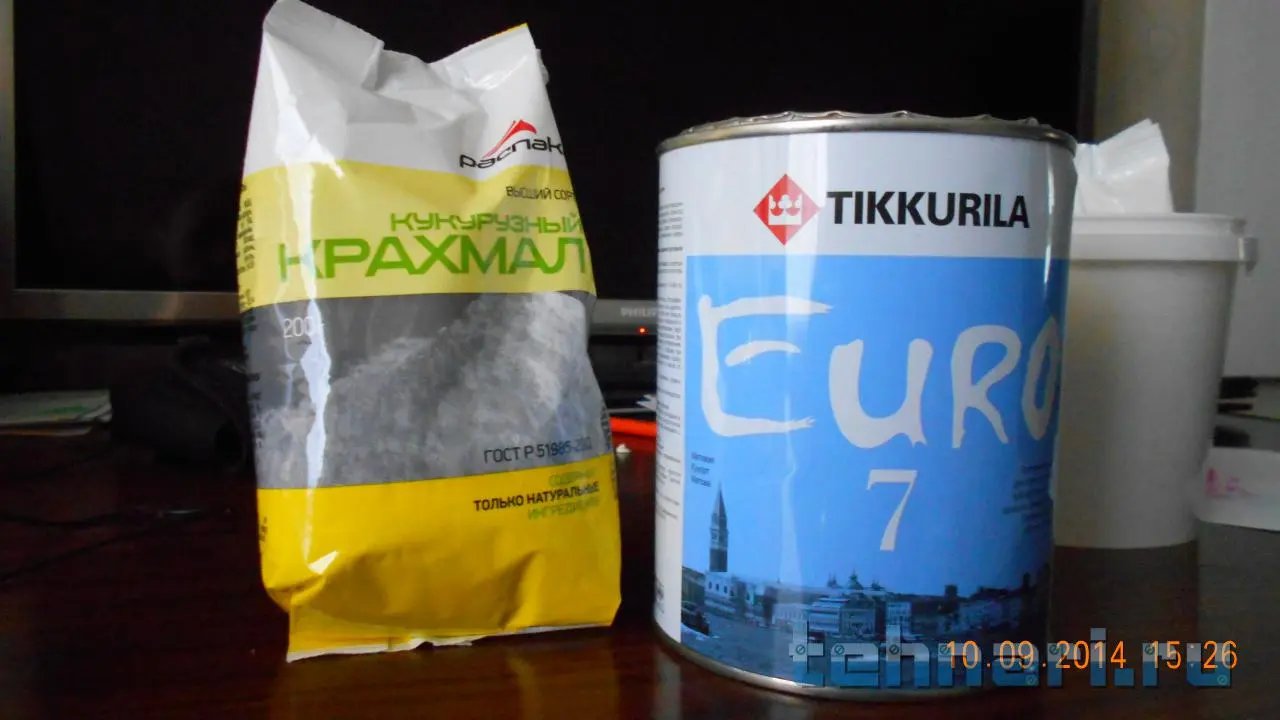 А синева из за Dulux супер белой она как и другие супер белые с добавлением оксида титана...поэтому белый порошок крахмала стал пробывать и синева пропала...