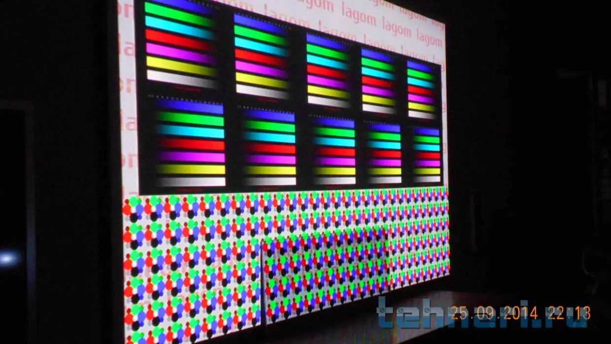 Фотик совсем не причем. В темноте на краях экрана виноват обьектив проектора. Результат я считаю хороший. Вы сделайте снимок с вашим образцом посередине внизу экрана с моим файлом который я на яндекс сбросил. Желательно 1 к 1 сделайте его. Точка к точке как откроете. Кстати изображение будет ярче если проектор ближе повесите с максимальным зумоми виньетка исчезнет, по крайней мере меньше будет
