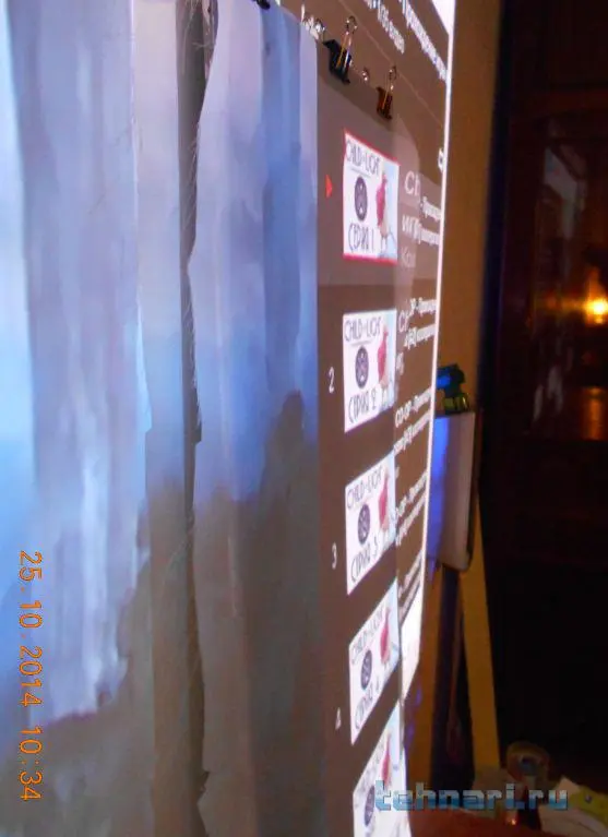 Вот фотки на подготовительной стадии-пробник серого цвета (покрытие VGT(RGB) наложил проглаженный белый тюль и закрепил скрепками..На фото пока финальный VGT(RGB) поверх тюля еще не нанес...