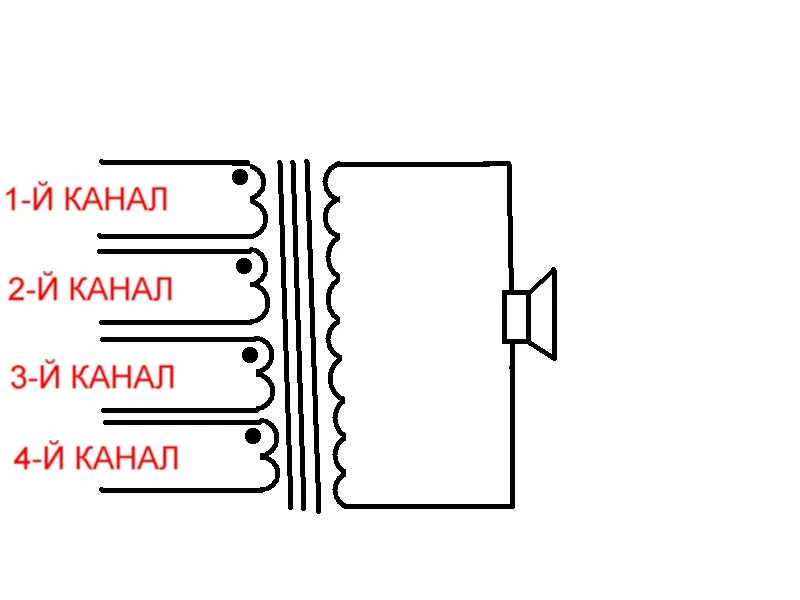 -а если четыре канала параллельно к одной обмотке трансформатора (чтобы сопротивление динамика 4 ома согласовать) ?