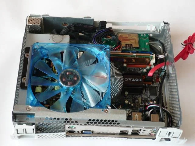 Zotac 630i / e8200 / 2гига какой-то хрени / 320гб винтика / приводок всеядный / 300 вт повермана / всеформатный картридер / ик рулилка ака пульт и почти мертвая тишина...слышно если поднести ухо в стенке с вентилем и винтом