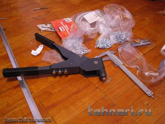 вытяжной заклепочник и заклепка должна быть соответствующая ... дедушка обычно не вытягивался а расклепывался вроде, да и сейчас они входу, так что дедушка еще работает - не на пенсии.