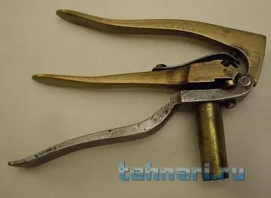 Вставляем гильзу защелкиваем, накалываем капсуль третьим рычагом, раздвигаем основные рычаги - капсуль извлечен (что бы капсуль не соскакивал прокол идет под углом) .