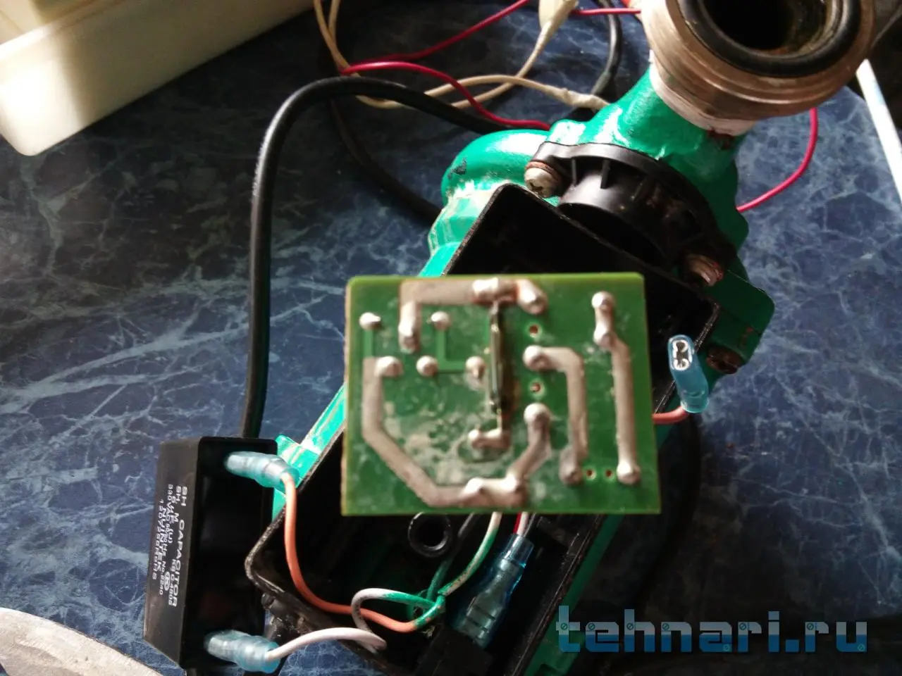 Накрылся водяной насос. Разобрал: не могу понять что за деталь находится на плате. Стеклянная колба, запаянная с двух сторон, в которой находятя две металические платы, которые едва соприкасаются. Сама колба установлена именно с обратной стороны платы (смотреть фото) .