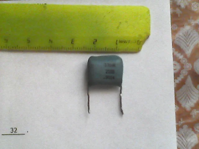 нашёл плёночный конденсатор в советском телеке, на нём написано то ли 330 пК, то ли 330nK. По размеру он хорош, думаю что такой кондер на 330пикофарада великоват. на фото виден только размер, маркировку не видно.