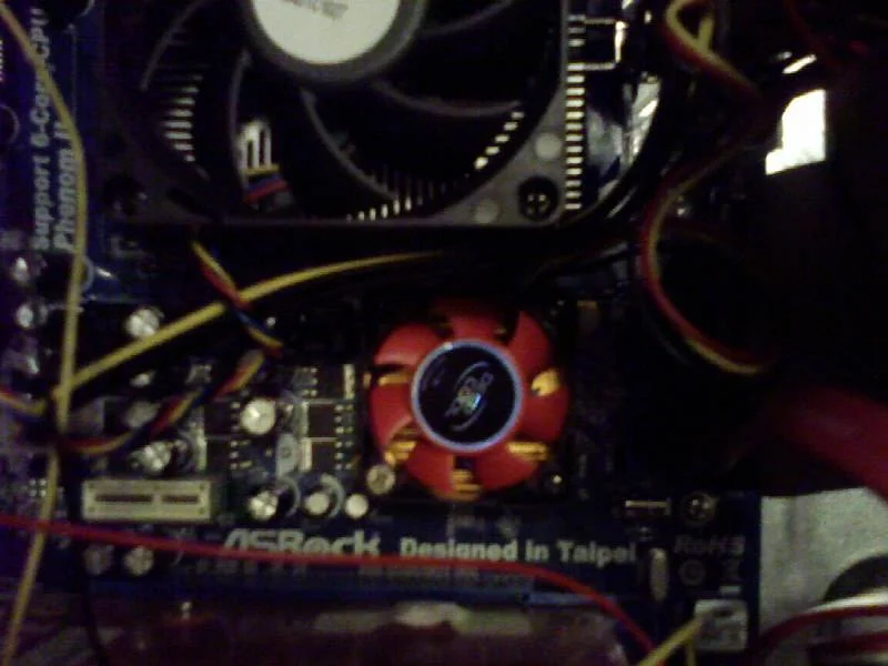 Купил DeepCool NB2 за 150 рублей. Отсоединил от него вент на 40мм (больший вент у меня физически не поместиться к материнке, радиатор слишком близко к процу) и болтами из комплекта прикрутил к радиатору на материнке. Один винт прикрутить не удалось, пришлось искать подходящий по размеру саморез. Темпра упала, но не так чтобы уж очень. В среднем градуса на 4-5. Буду надеяться, что этого хватит.