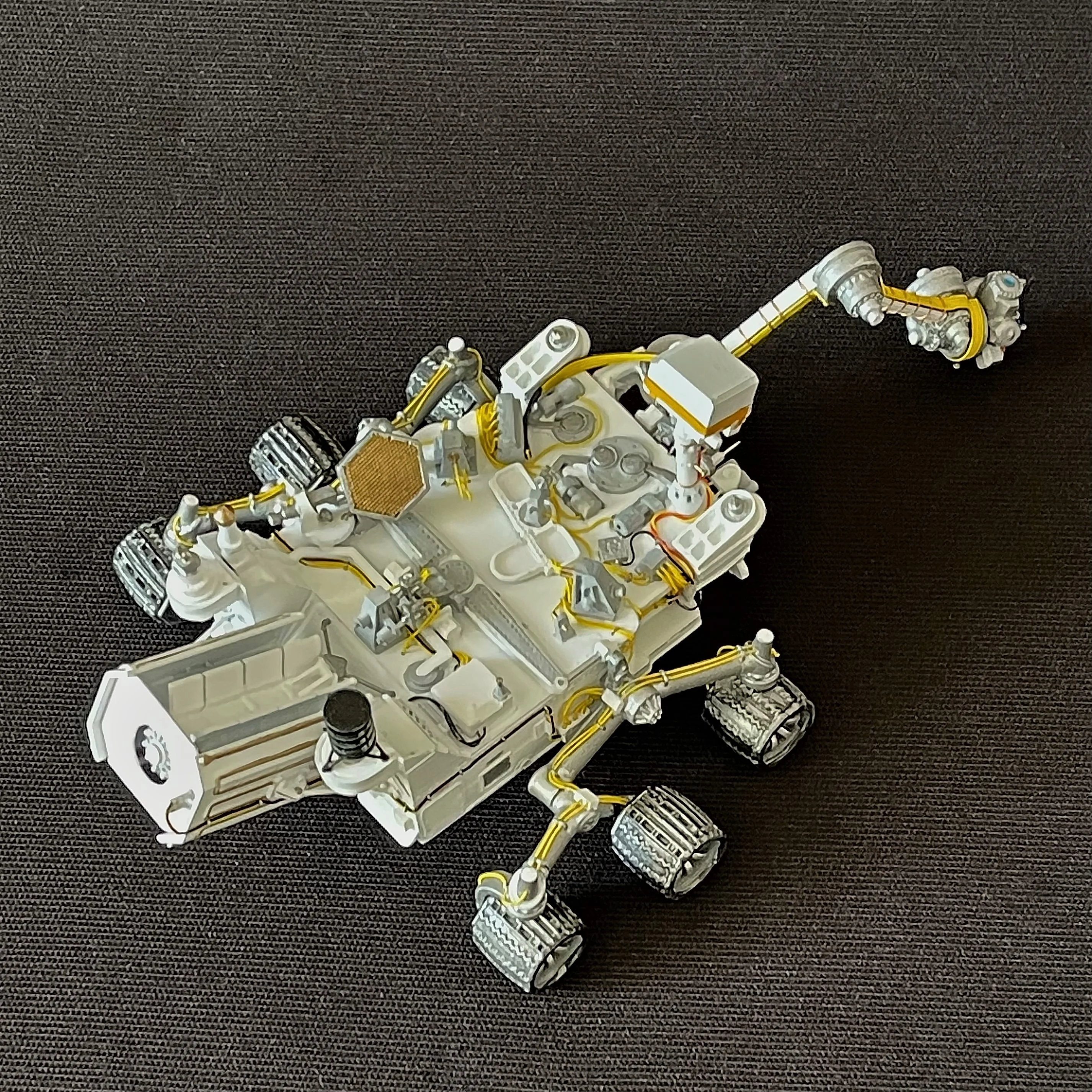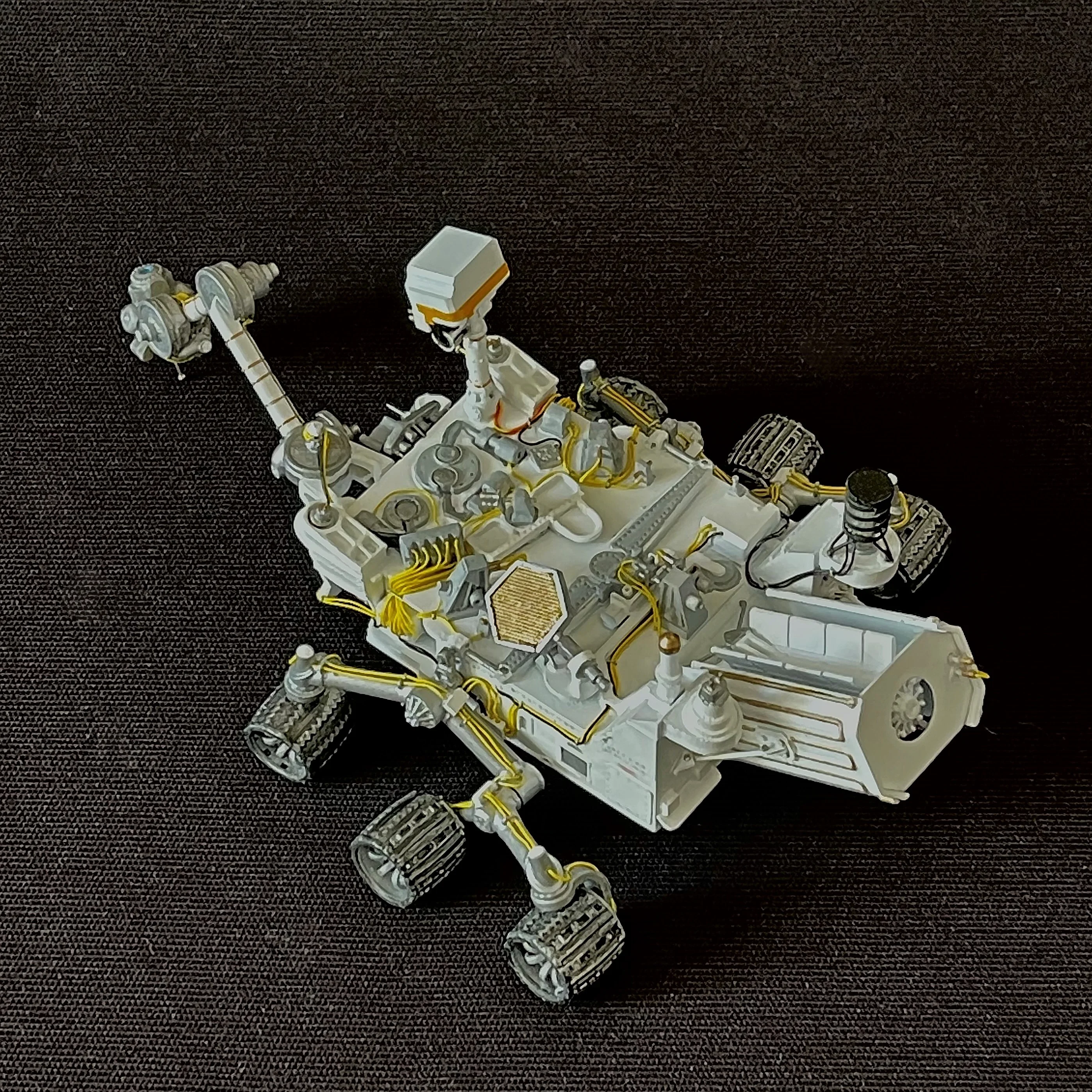 Потихоньку продолжаю заниматься внесением дополнений и изменений, не учтнных производителем, или просто не дошедших до меня. На очереди антенна высокого усиления, с помощью которой марсоход может связаться с Землей или искусственными спутниками Марса, через которые он транслирует всю полученную информацию на Землю.Поскольку основание данной антенны было установлено не на совсем правильном месте, то пришлось его срезать, доработать, изготовить заново тарелку антенны и установить на штатное место. Работа с данной антенной еще не закончена и в дальнейшем она будет обрастать подробностями.