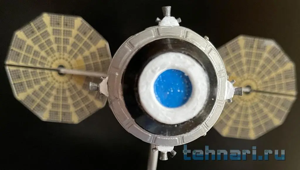 До завершения работы над моделью осталось совсем немного: изготовить отсутствующие в комплекте блоки двигателей ориентации, различные антенны и подобрать соответствующую подставку.